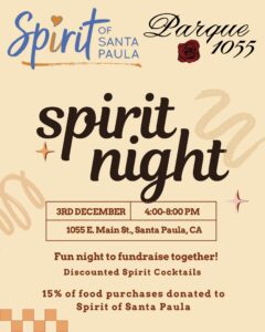 Join us on December 3rd 4PM-8PM for a fundraiser! Fun night to fundraise together! Discounted Spirit Cocktails 15% off food purchases donated to Spirit of