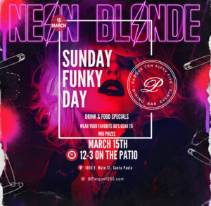 A high-energy Sunday Funky Day with drink and food specials, 80’s vibes, and prizes for the best retro look. 🎶✨