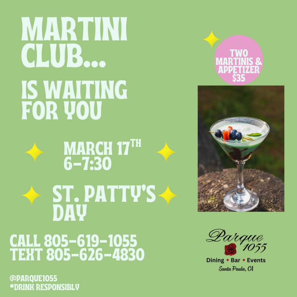 Celebrate St. Patty’s Day at Martini Club with two martinis and an appetizer for $35—cheers to a festive night out!